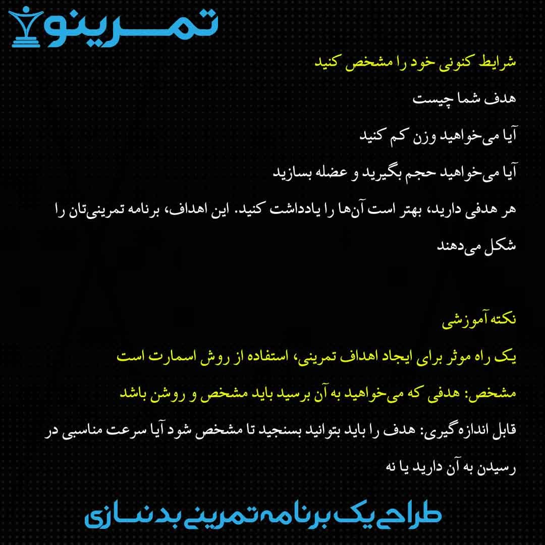 - یک راه موثر برای ایجاد اهداف تمرینی، استفاده از روش (SMART) است.