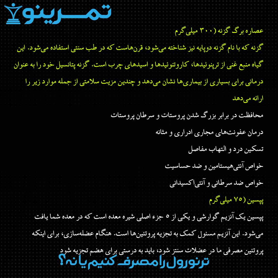 ترنورول مکملی است که طراحی شده تا خواص استروئید ترنبولون را تقلید کند. منبع (۱)