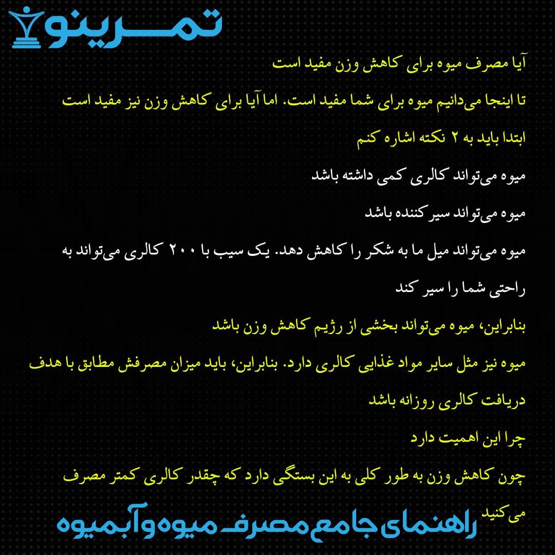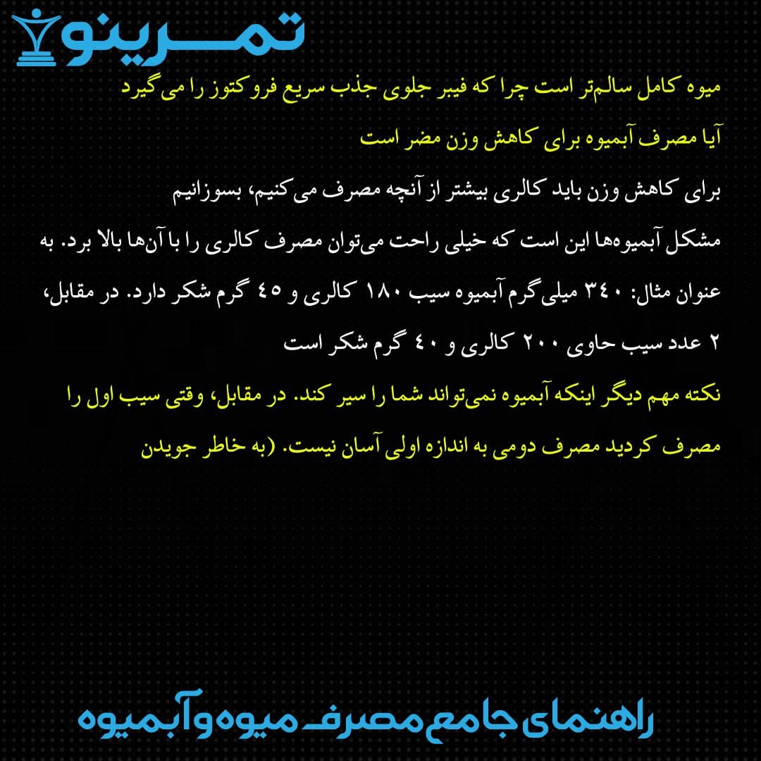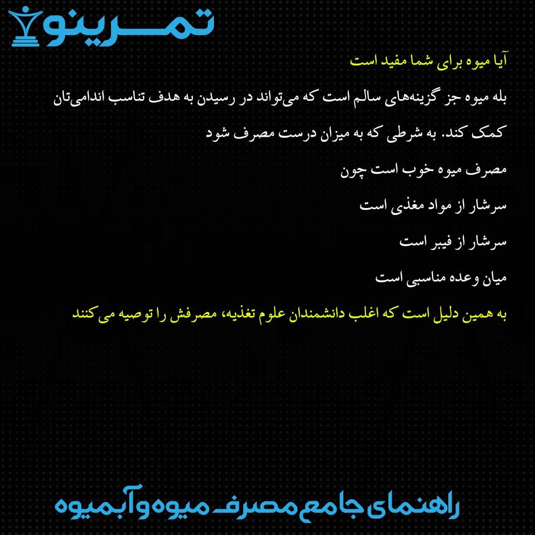 نکته: میوه نیز مثل سایر مواد غذایی کالری دارد. بنابراین، باید میزان مصرفش مطابق با هدف دریافت کالری روزانه باشد.