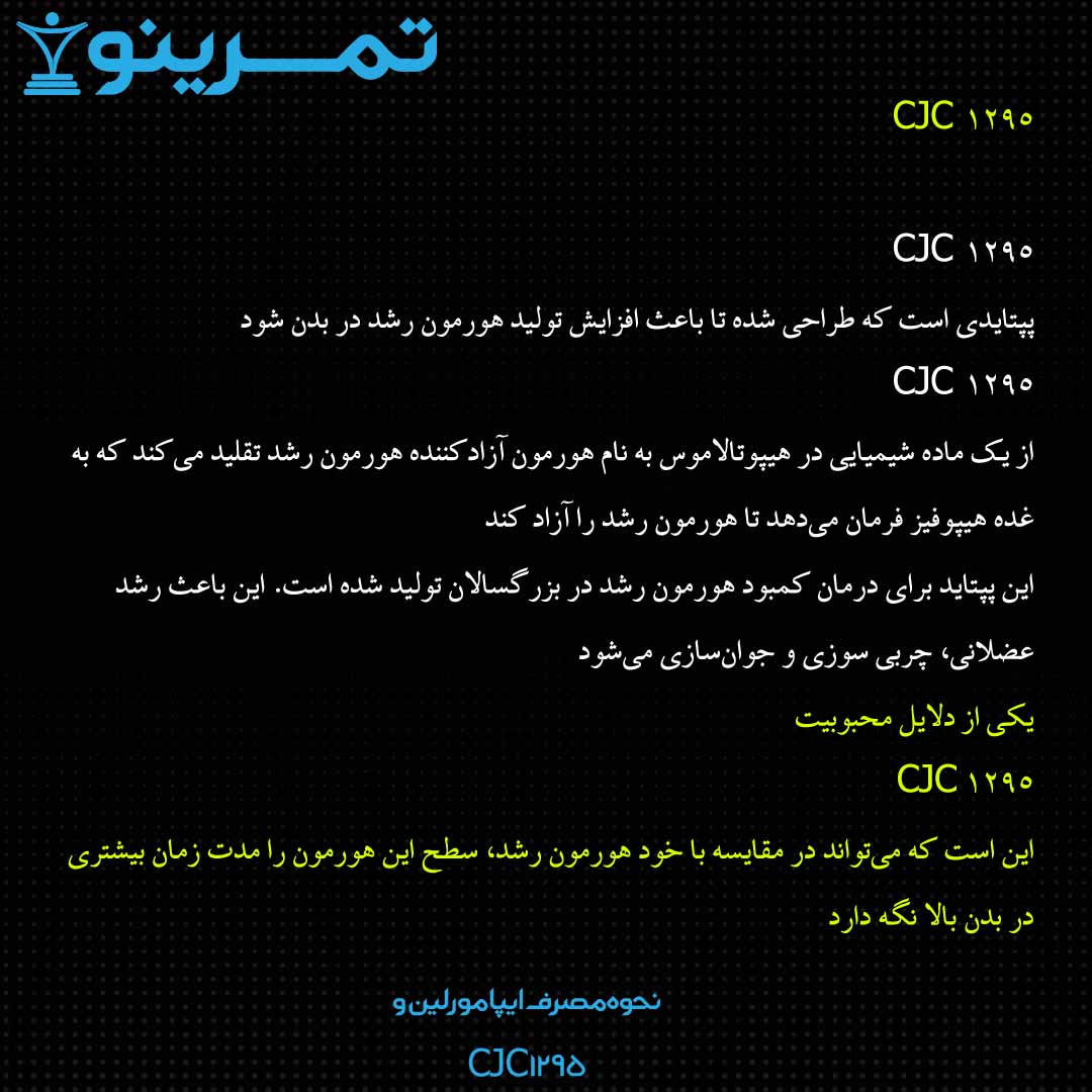CJC 1295 پپتایدی است که طراحی شده تا باعث افزایش تولید هورمون رشد (GH) در بدن شود. منبع (۱)