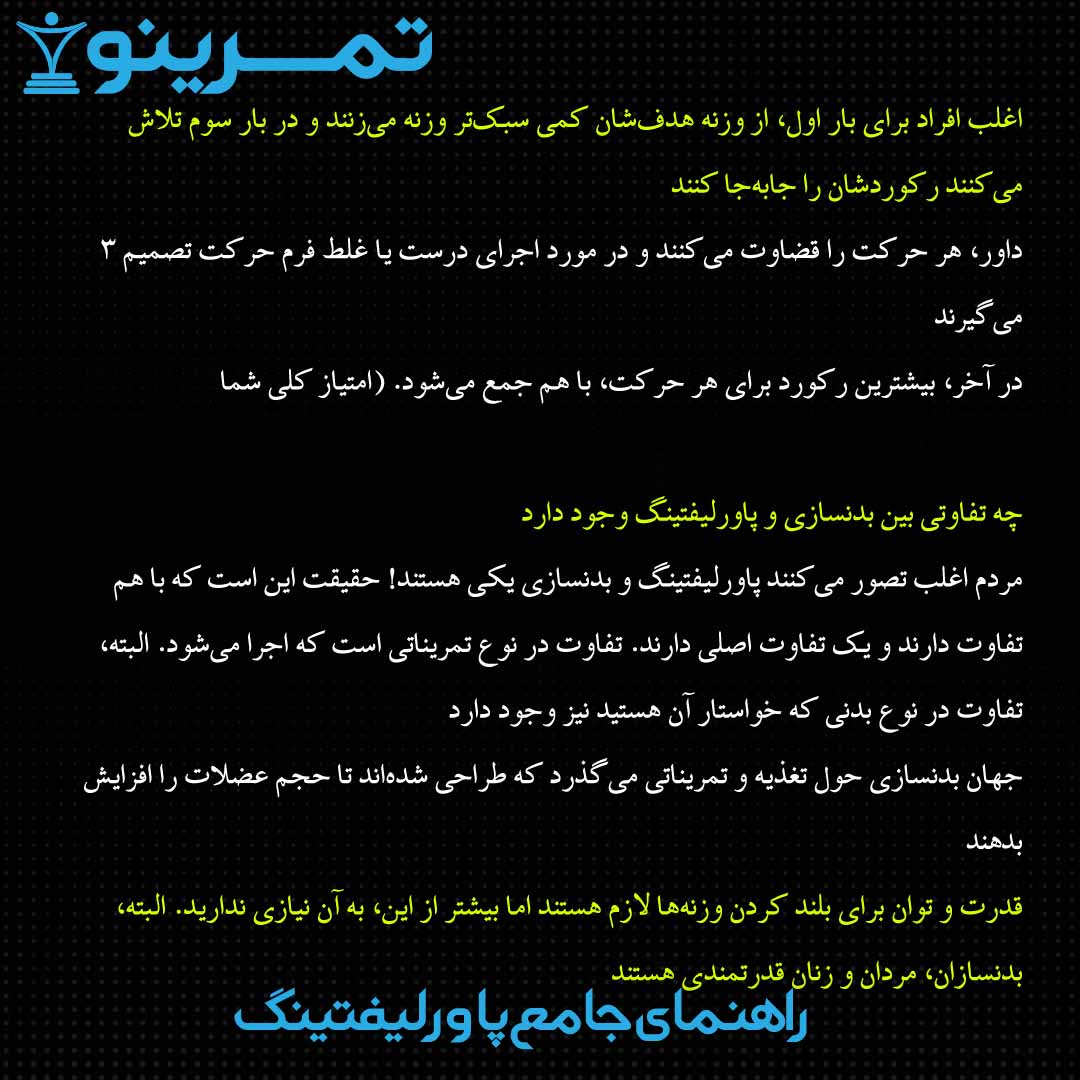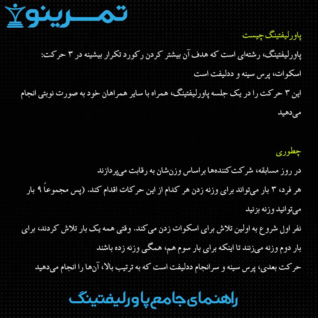 - پاورلیفتینگ کارها بیشتر وقت خود را صرف ۳ حرکت ذکر شده میکنند.